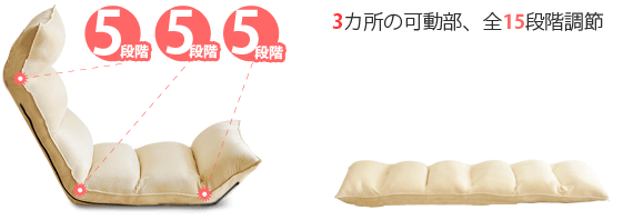 また、弾力性のあるウレタン素材を用いていますので、クッション性も高く、ラクな姿勢で座れっていられます。座っても寝転んでも、好きな体勢で使えますので、お部屋でくつろぐには、重宝する座イスとなっていますよ。